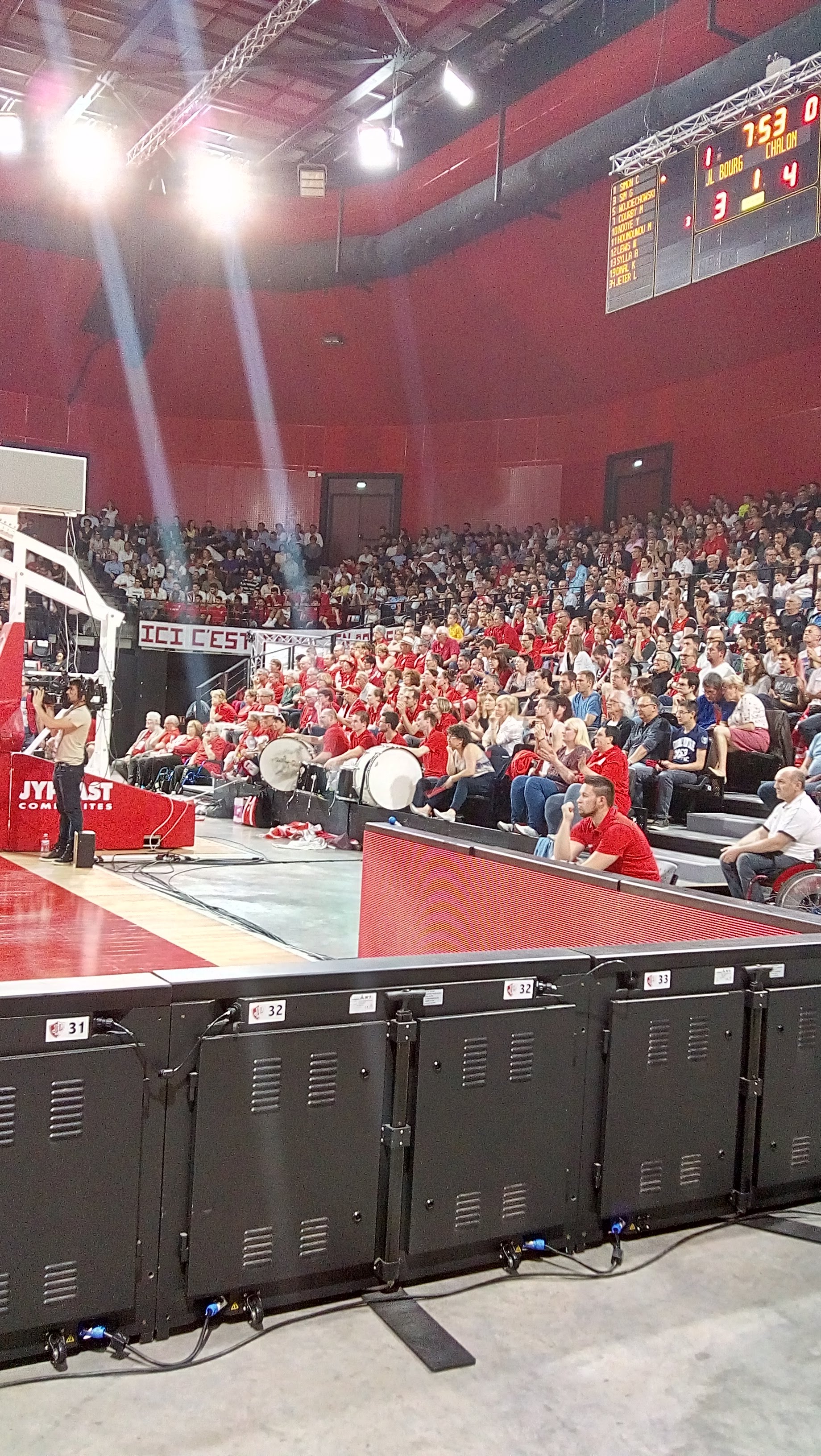 EKINOX!!! Le fief de la JL Bourg. Une ambiance du tonnerre, la sono est bonne, la video est présente et le public est chaud, chaud, chaud. Toujours plus quand la JL gagne, mais même dans l'autre cas, les supporters ne lâchent pas leur joueurs. C'est super.