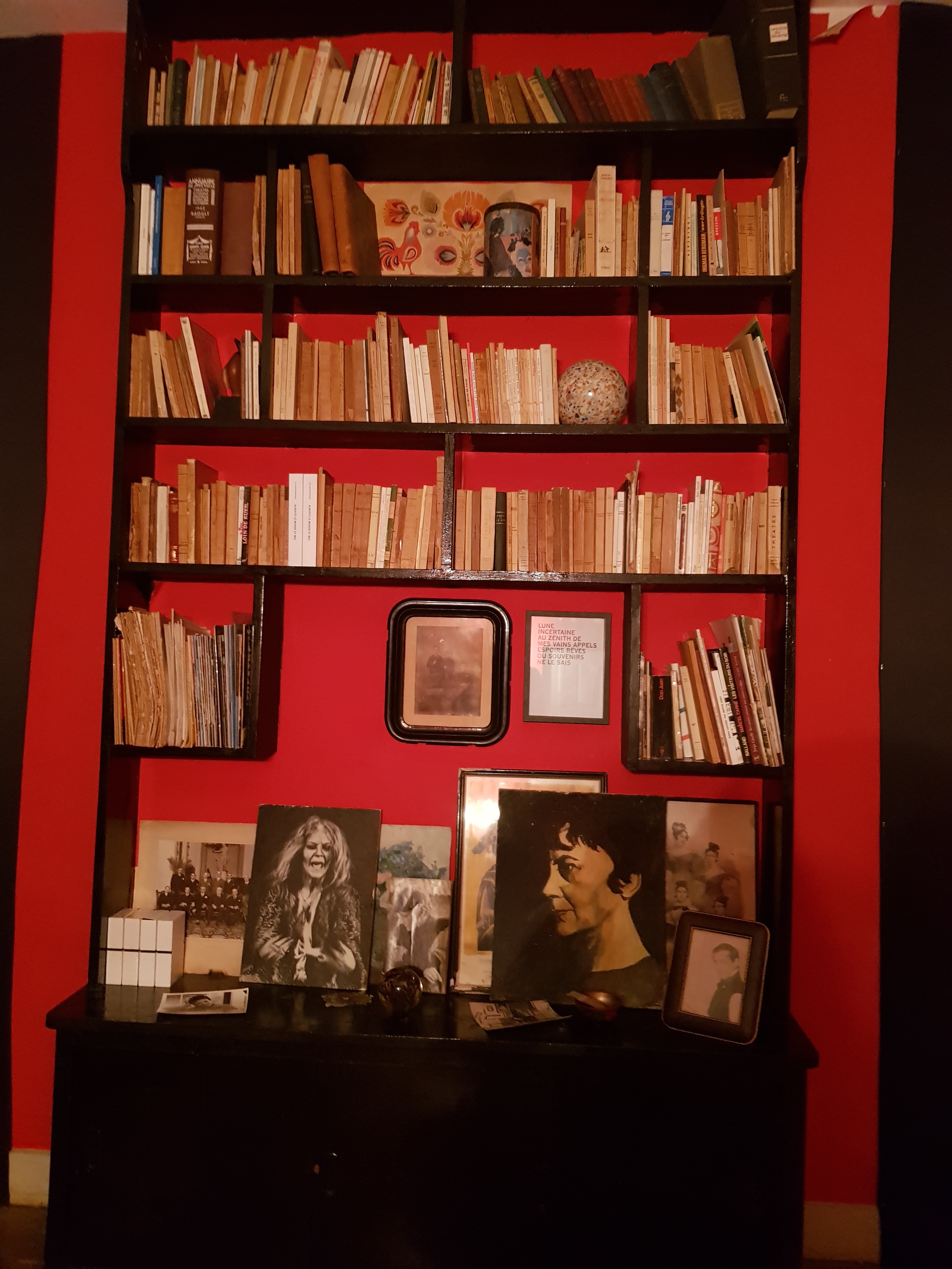Un lieu d'inspiration, un lieu de travail pour les artistes mais un peu décevant pour les visiteurs de la maison de Maria Casarès : la visite n'est pas très didactique, on apprend finalement peu du rapport de l'artiste avec la maison. Le tout est un peu pompeux voire prétentieux mais c'est plus par volonté de lien avec l'art théâtral des passionnés...que par prétention. Reste que le visiteur peut être mal à l'aise devant la scénographie de l'ensemble. Les œuvres du plasticien hébergées dans les pièces sont certes intéressantes et en rapport avec l'ex habitante des lieux mais cela a du mal à cacher le manque de meubles et d'âme des intérieurs qui semblent avoir été dépouillés de toute vie. Seule la bibliothèque semble avoir gardé quelques traces de la tragédienne. Nous aurions aimé entendre un peu plus la vraie voix de Maria dans les pièces et au cours des tribulations. Des légendes sous les photos...ou un support les présentant. Une belle idée que le parcours épistolaire et musical dans le jardin. Gageons que la restauration saura gommer ces erreurs de jeunesse plus liées aux enthousiasmes qu'à une propension trop marquée à la théâtralité sonnant aujourd'hui bien faux.