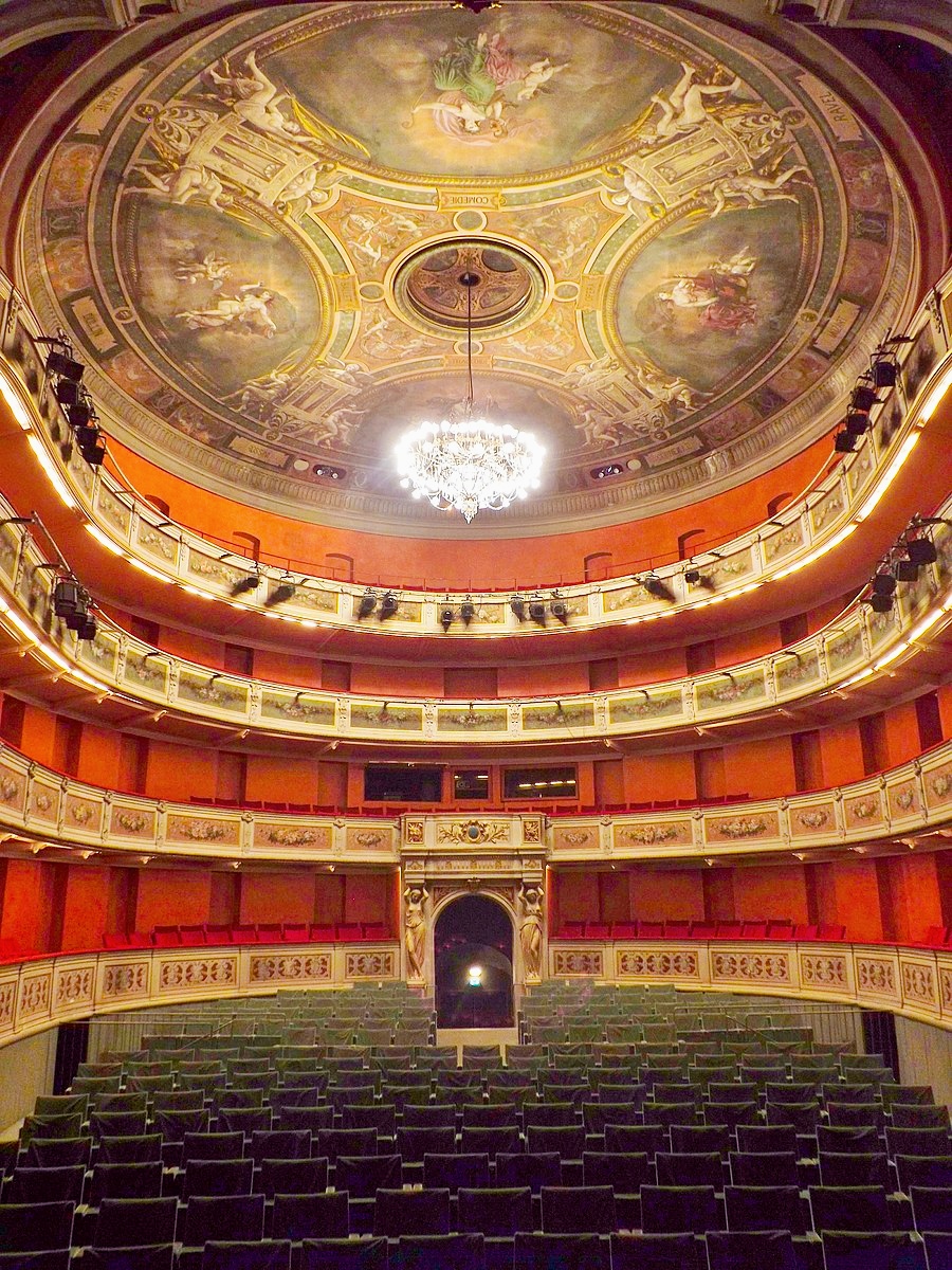 Très très beau théâtre à l italienne, c est la réplique de la Scala à Milan en plus petit, ayant travaillé dans ce théâtre pendant de longues années, je vous recommande de le visiter, il a été rénové, il y a quelques années mais il garde toujours son charme,la toile de Orphée la descente aux enfers est sensationnelle, elle a été entièrement rénové par des professionnels et je peux vous assurer que cela vaut vraiment le détour, voilà en quelques lignes car je pourrais continuer à vous parler de ce théâtre mais allez le visiter et vous verrez comme on se retrouve projeter à la belle époque du théâtre