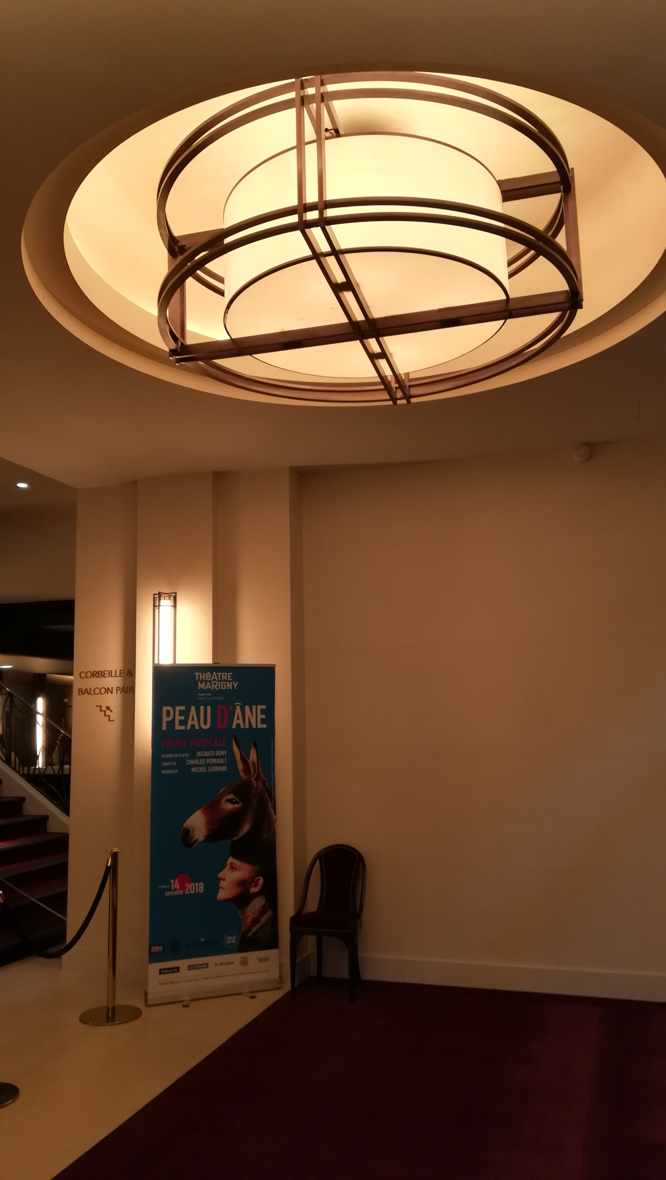 Grand théâtre parisien dans lequel nous avons parfaitement été accueillis. La pièce Joyeuses Pacques était jouée ce soir. Très bon moment au théâtre Marigny ! Les acteurs et la mise en scène subliment cette pièce de Jean Poiret. Nous avons beaucoup ri !