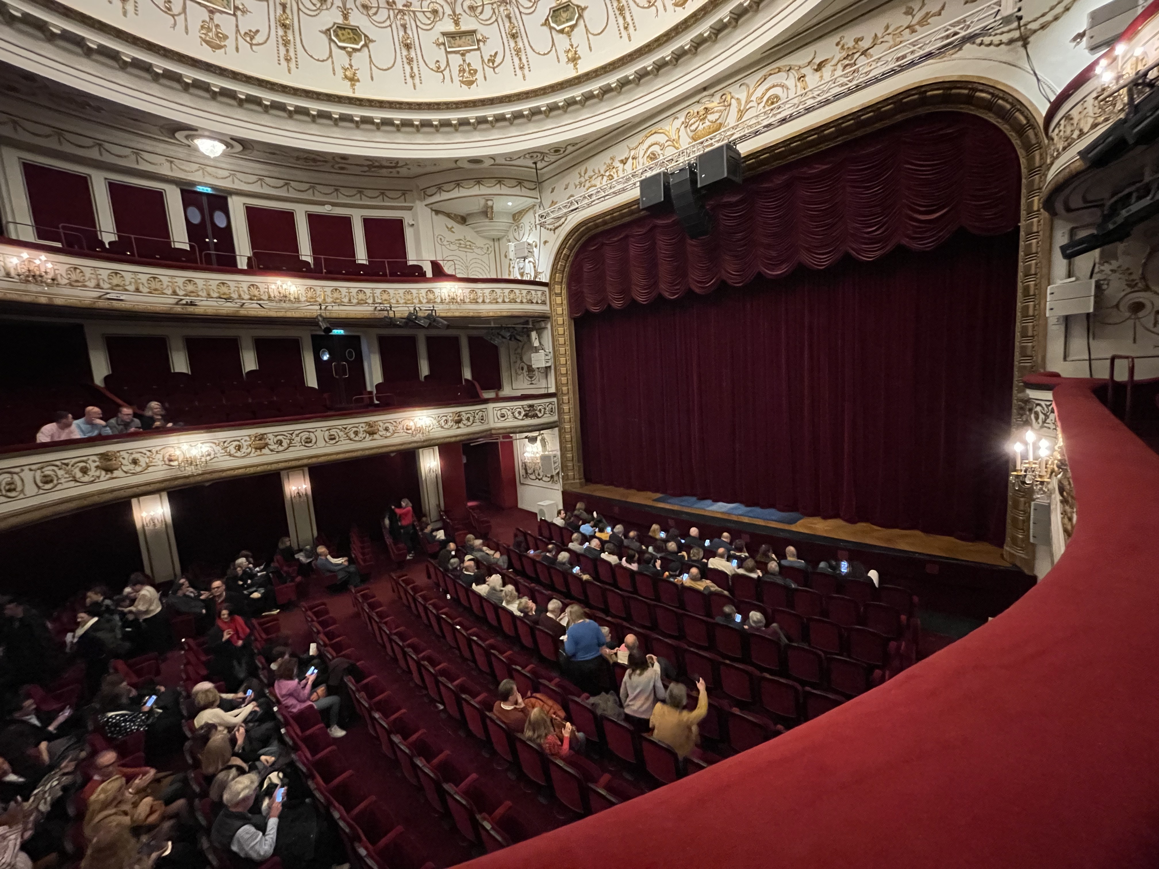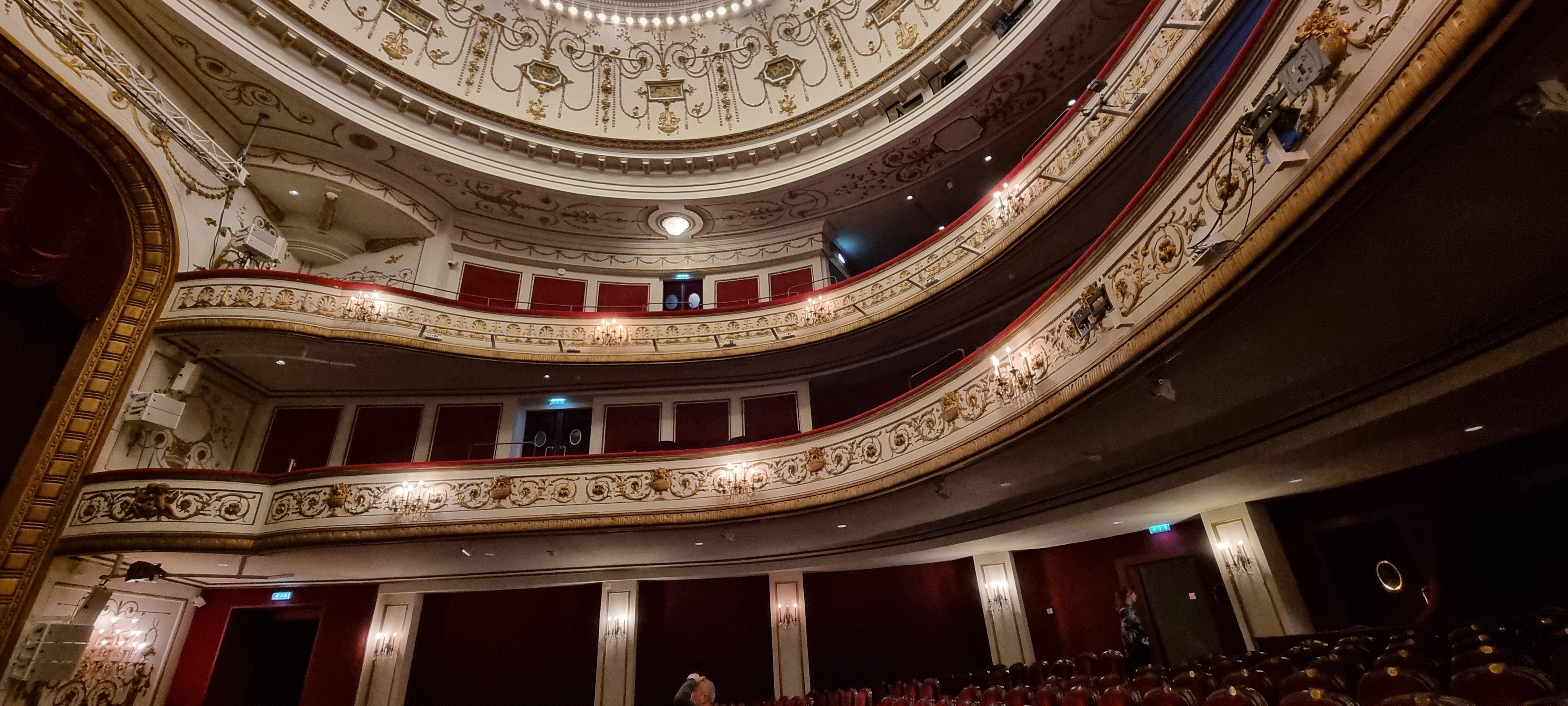 Très beau théâtre circulaire à balcon avec un décor léger de type classique. L'acoustique est parfaite, l'assise confortable