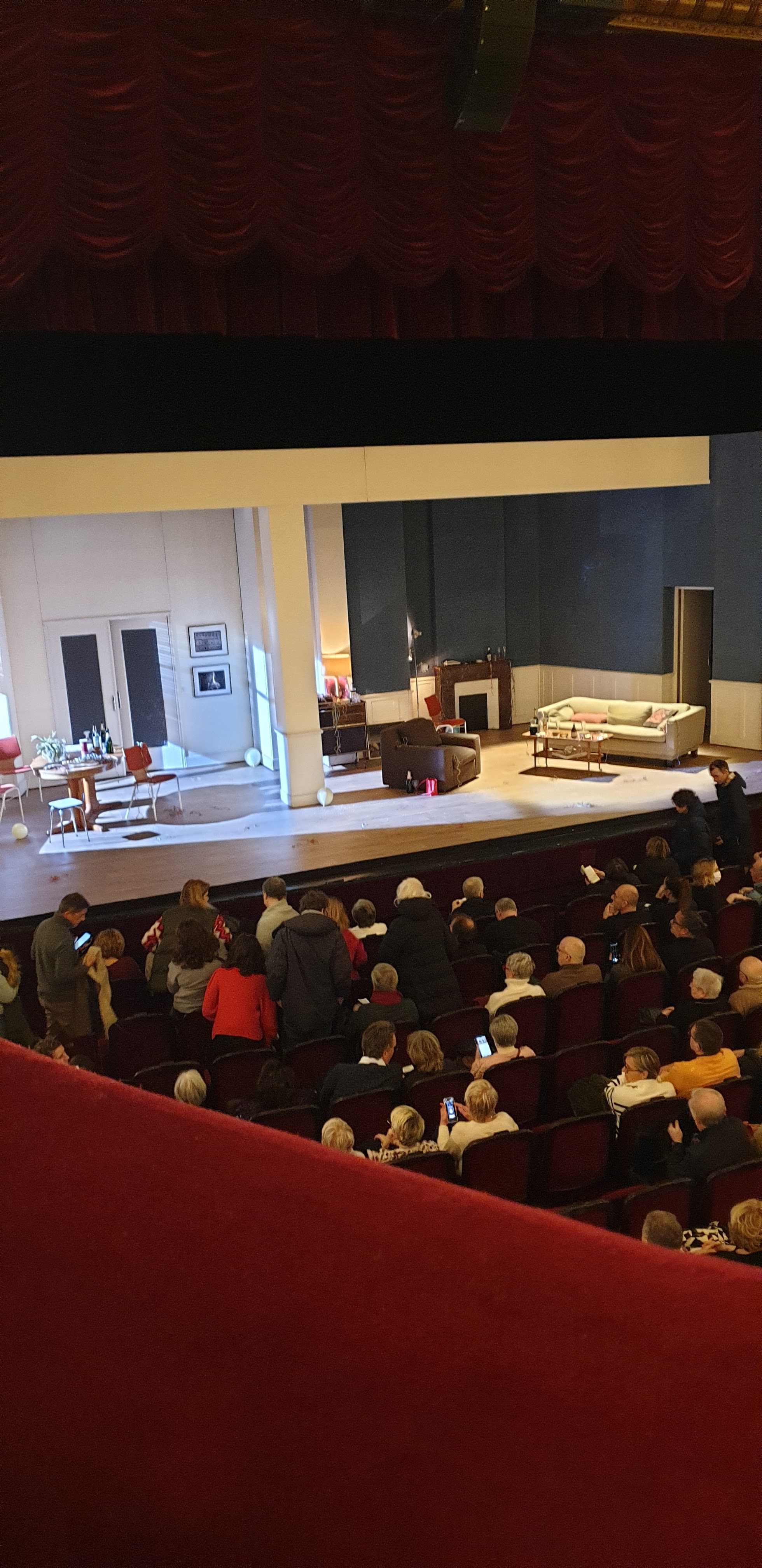 Juste l'éducation de certains qui se permettent de se rehausser avec leur manteau pour mieux voir ! Et pas jeune de surcroît, même demandé gentiment, il n'a pas bougé et pas petit non plus ! On fait des rappels pour les portables, pourquoi pas pour ça ? Sinon, très bon accueil et de très bons comédiens..